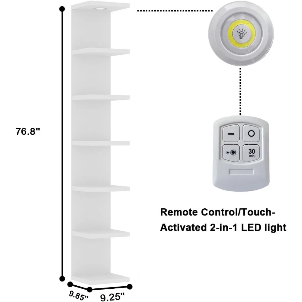 - DECORATE & DISPLAY FLOATING SHELVES WITH LIGHT-One of the standout features of this wall shelf unit is the integrated LED remote control light. Illuminate your display with lighting, setting the mood and enhancing the visual impact of your showcased items. The LED light adds a contemporary and ambient glow, creating a focal point that draws attention to your carefully curated collection.